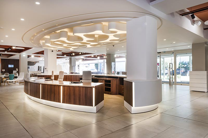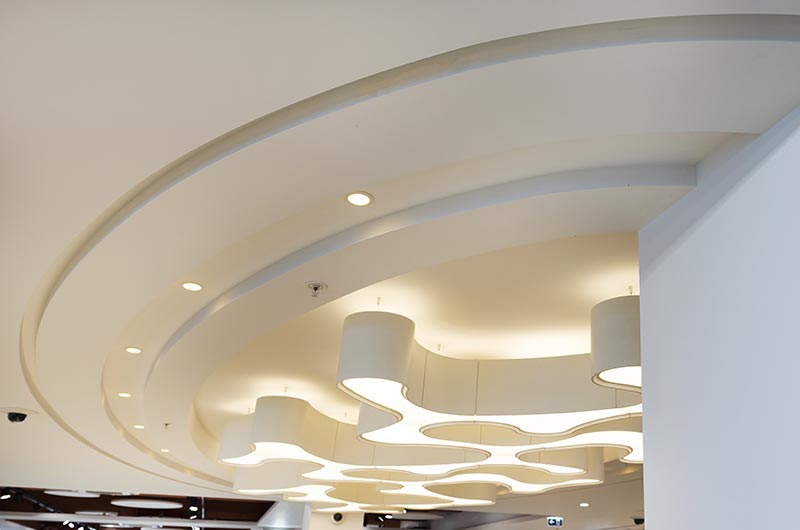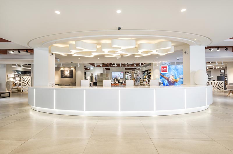 Avec le concours du cabinet d’architecture, Interra PLC a sollicité nos compétences sur le projet home store en raison de la complexité et de l’impressionnant volume de faux plafonds à réaliser en un temps record.